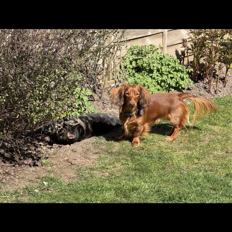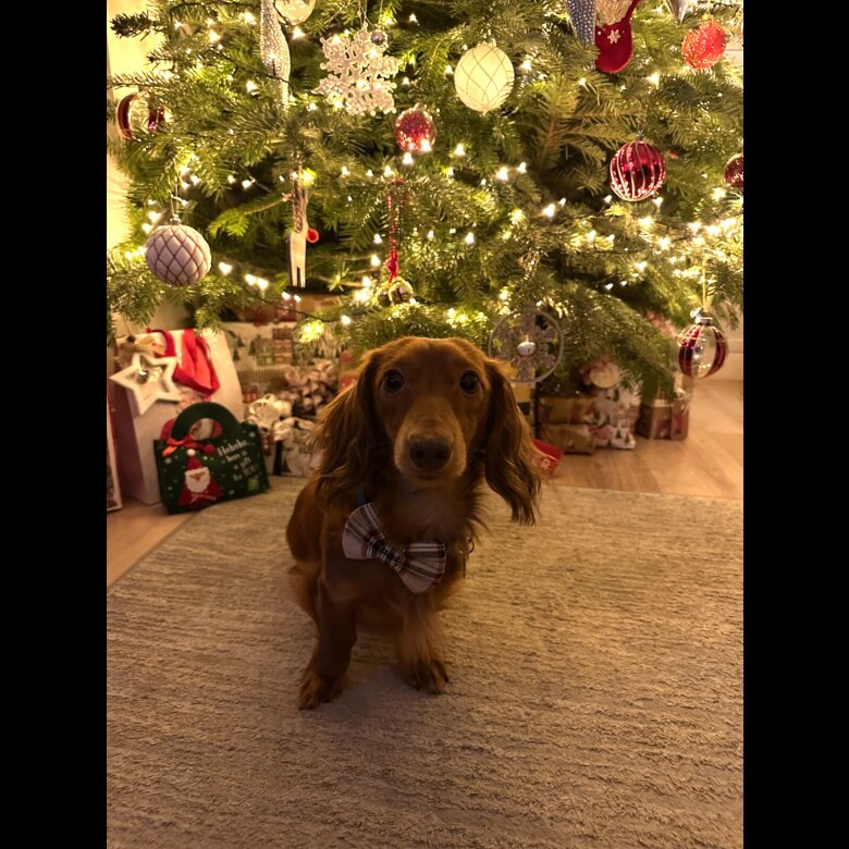• Breed: long-haired Red dachshund.