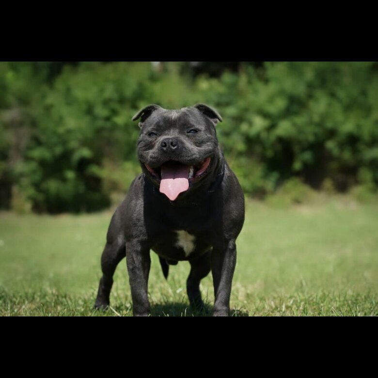 SOLID BLUE STAFFORDSHIRE BULL TERRIER READY FOR THE LADIES